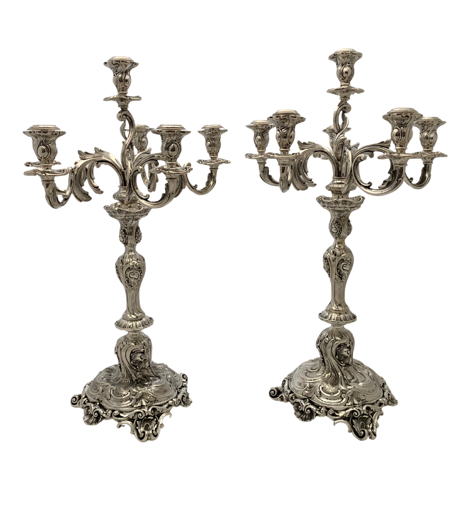 Antique (Circa 1870) Austrian 800 Silver 12 Light Candelabra Pair (pair is slightly different in details).