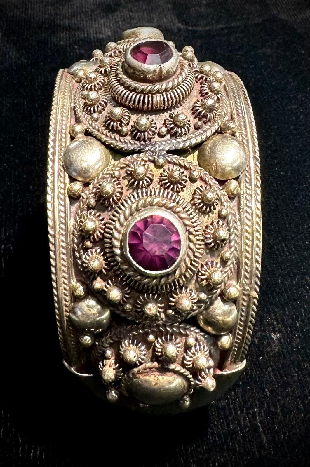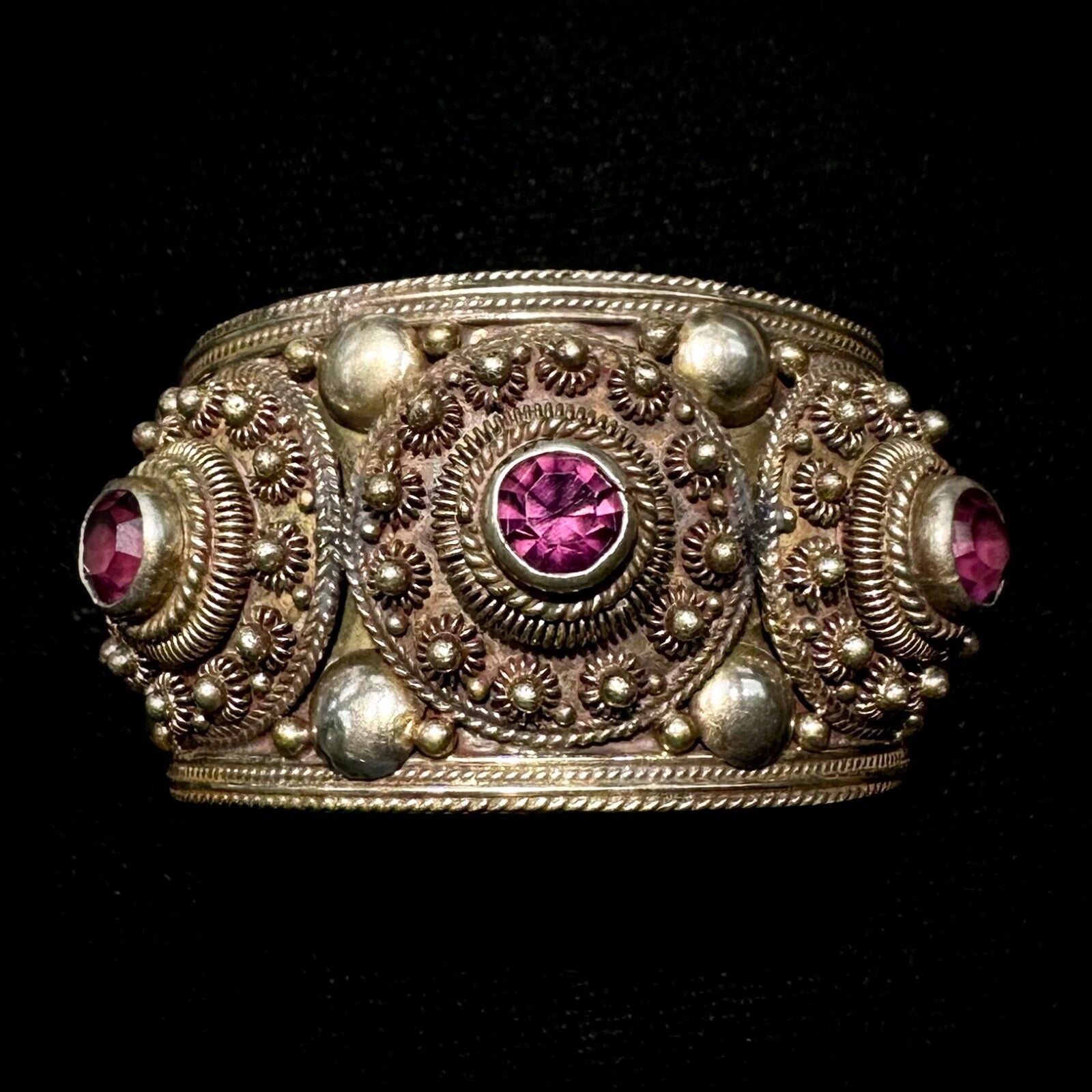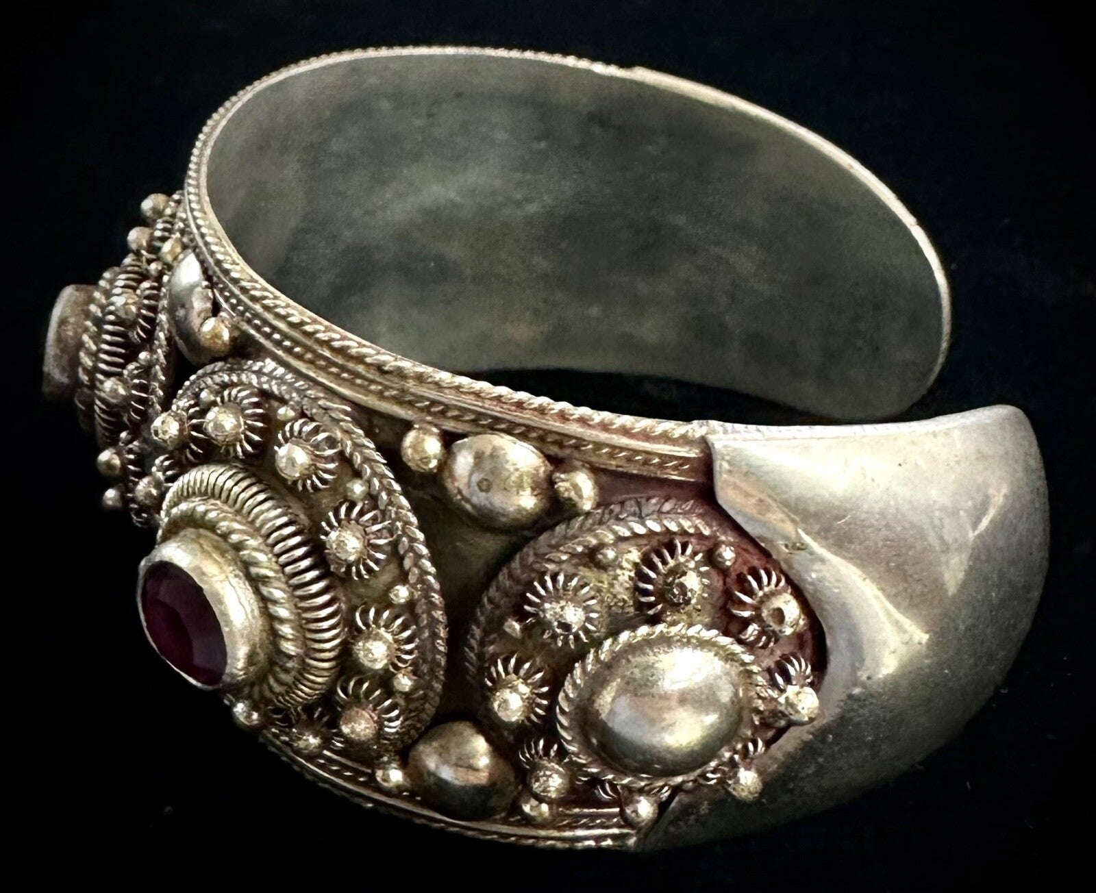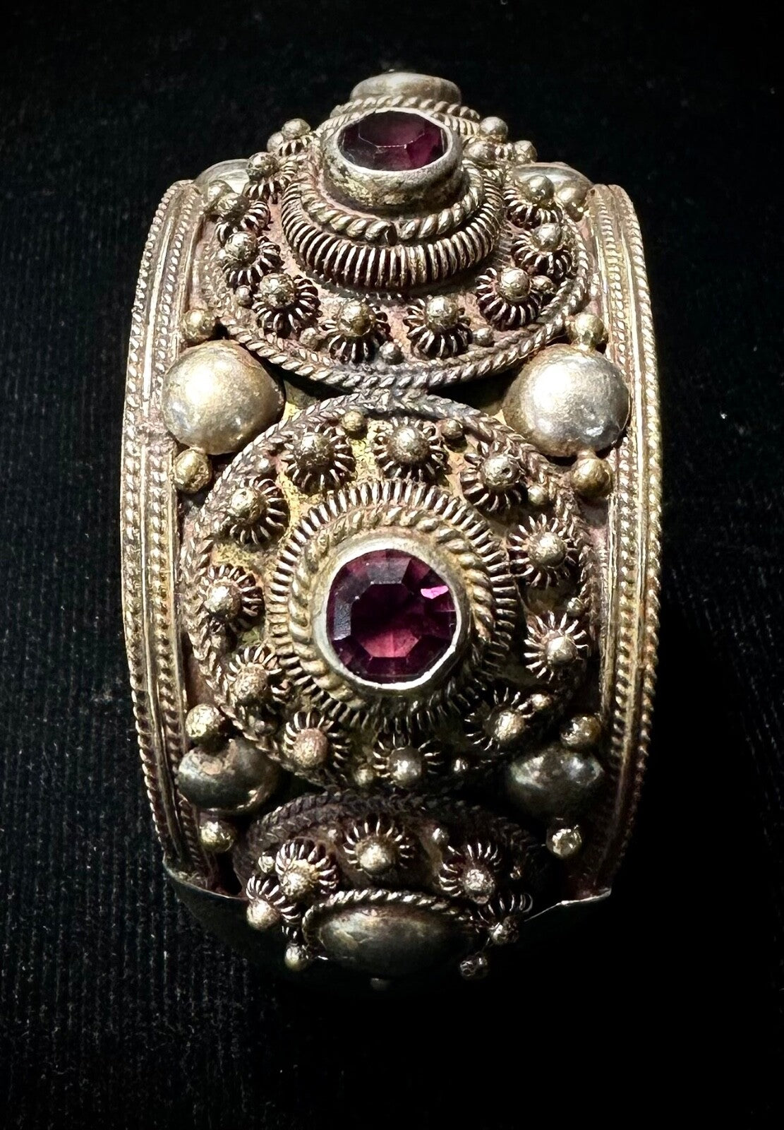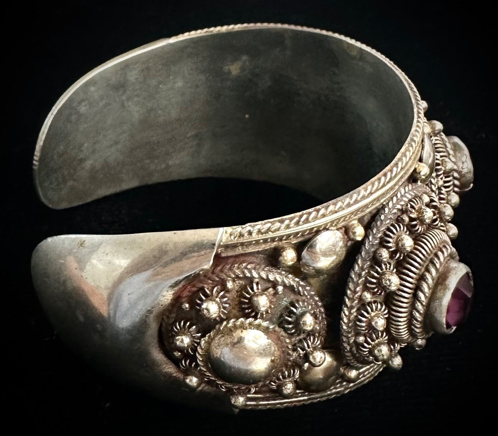 Purple Rhodolite Garnet Siam Sterling Silver Cannetille Vintage Bangle Bracelet